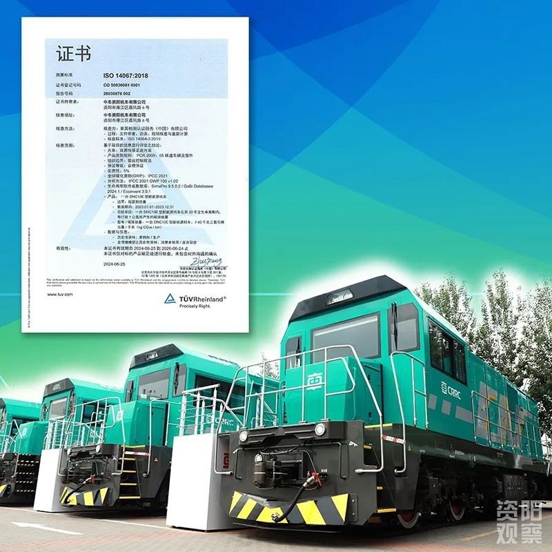 中车资阳公司获得国际权威认证机构颁发的新能源机车(内电)碳足迹证书。