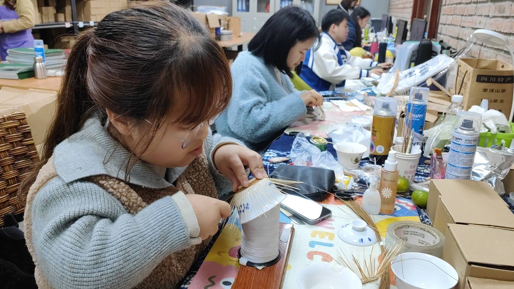 在文创工作室,宽敞的操作间堆满白瓷盖碗、竹丝、剪刀、镊子等各种原材料和工具。“进入这个行业,很大因素是受到我父亲的影响。”白梓忆带领记者来到展示区,碰到了她的父亲白静波。