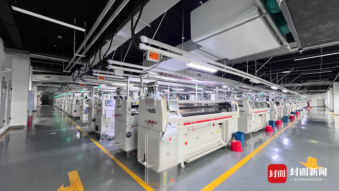 时代落幕,剧里传统纺织厂退出舞台。剧外,位于四川广安的全国规模最大的数字化智能智造纺织厂生产现场,数百台一线成型电脑横机正同时运行,机器当上“织娘”,科技十足。