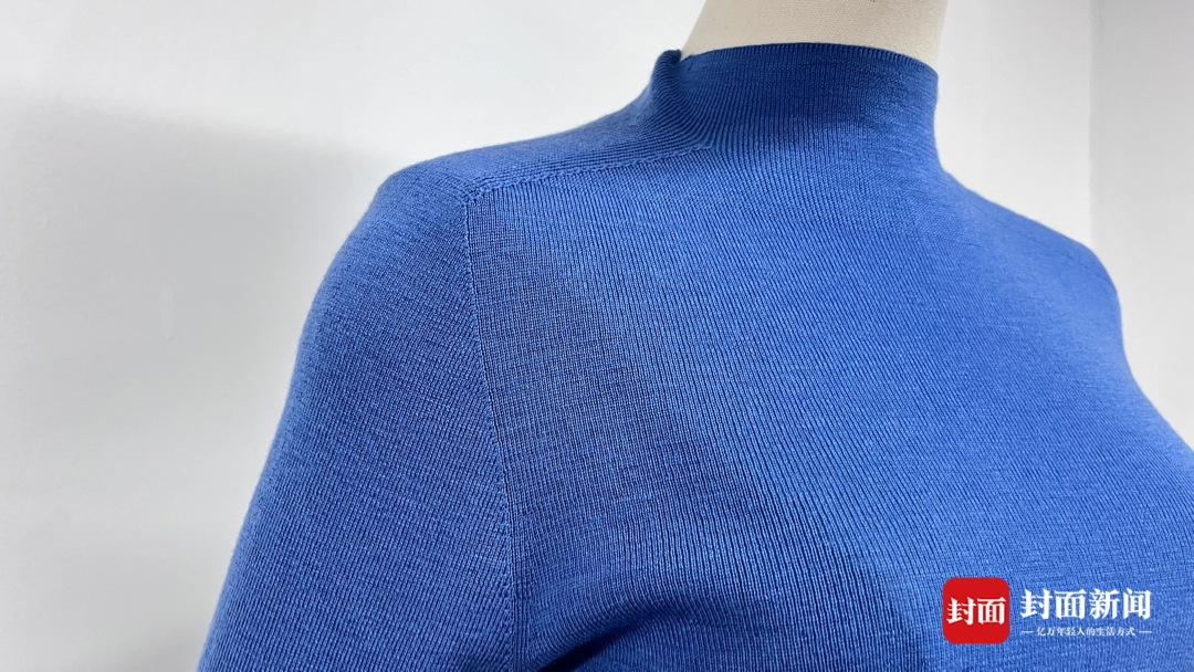 当记者伸手触摸,瞬间被其质感所惊艳——衣服的正反两面竟然如出一辙,完全感受不到任何缝合的线条,柔软舒适。