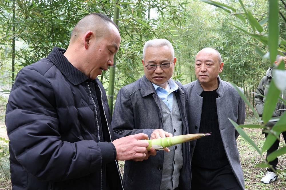 走进占地面积500余亩的雷竹基地,村民熟练地把破土而出的鲜嫩麻竹笋从根部撬起、砍下。“这笋挖得有点晚了,要多注意林子的密度,为来年春笋留足空间。”剥开薄壳,蓬溪县自然资源和规划局高级工程师徐志伦向“学员们”交代着注意事项。