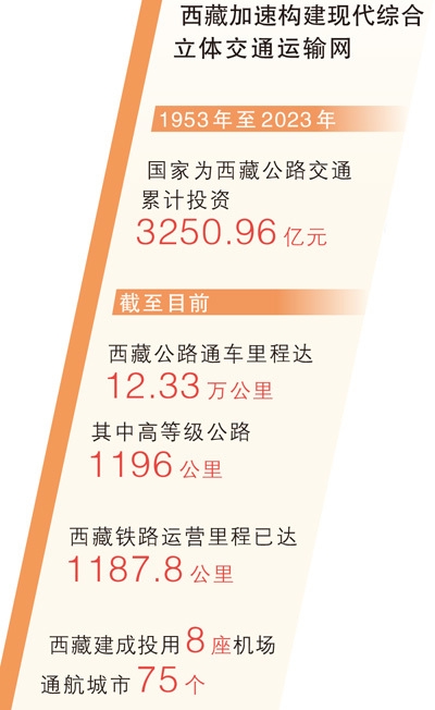 如今,雪域高原行路不再难——随着西藏现代综合立体交通运输网加快构建,具备条件的乡镇、行政村公路通达率均为100%;7个市(地)中的5个已经通了高等级公路……在李桥梁的讲解中,西藏交通新变化、发展新成就的故事越来越多。