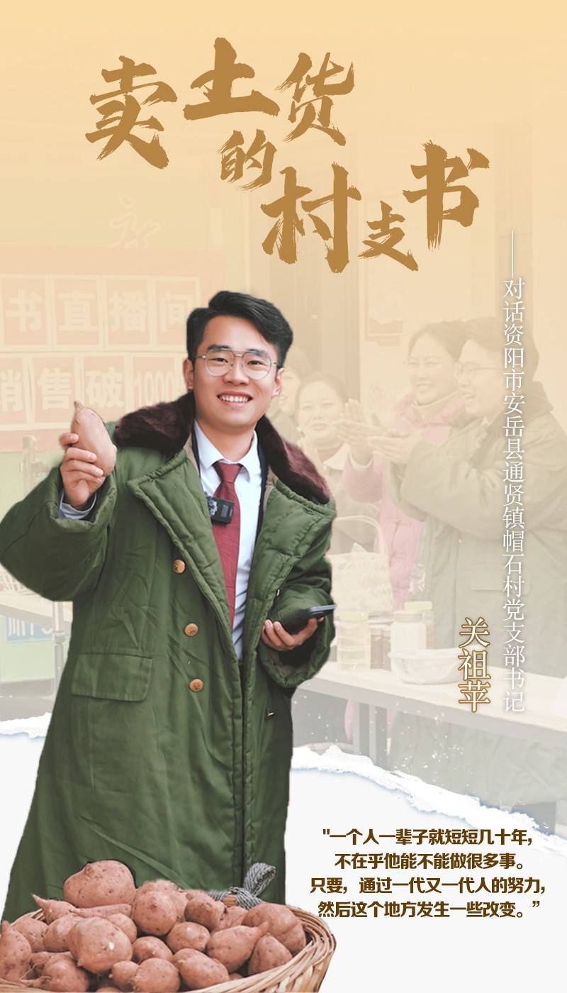 带货的小伙儿是资阳市安岳县通贤镇帽石村的党支部书记、四川省人大代表、“百村同行·助农联盟”公益助农组织发起人——关祖苹。