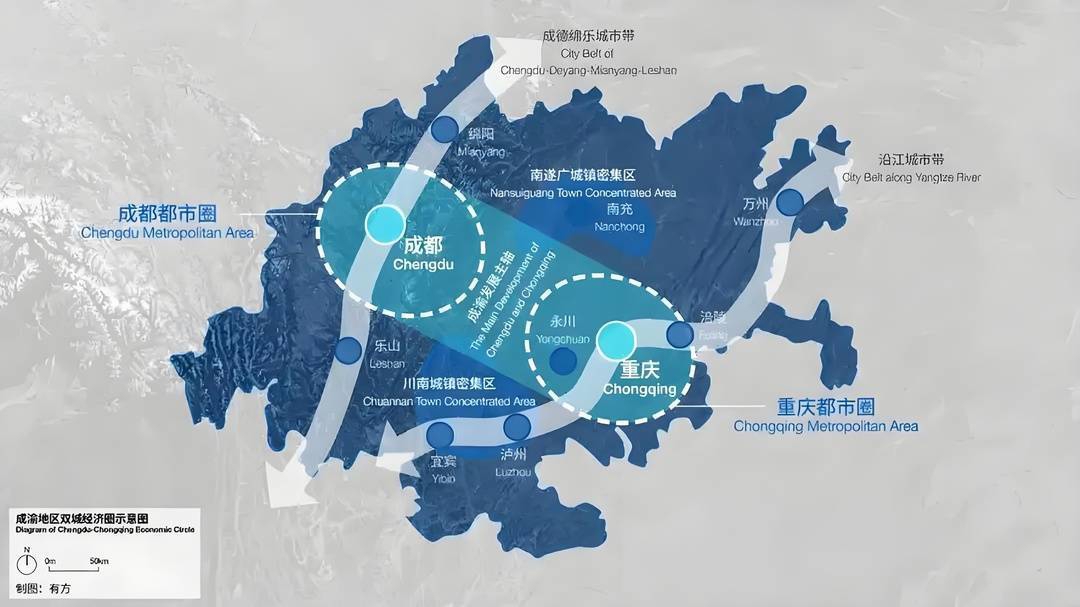 值得一提的是,双城经济圈的经济总量占整个西部地区的比重超过30%,与京津冀、长三角、粤港澳大湾区一起,形成了东南西北四向牵引、支撑全国区域发展战略大局的“钻石菱形格局”。