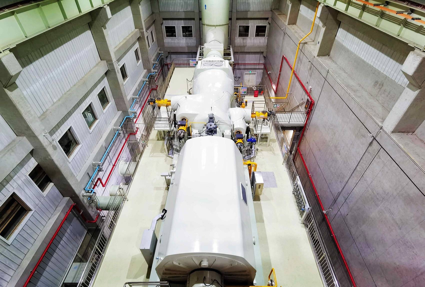 东方电气集团东方汽轮机有限公司为项目研制供货了300兆瓦级非补燃式压缩空气透平膨胀机。针对压缩空气透平机组多次再热、大流量、频繁启停等诸多技术难点,采用了多项前沿技术和创新设计,首次在压缩空气储能领域应用了超高补气流量的全工况满负荷高效透平配气与调节技术,开发出适用于高负荷、大流动系数的高效压缩空气透平通流设计技术、宽负荷叶片等,保证了机组运行的高可靠性及经济性。