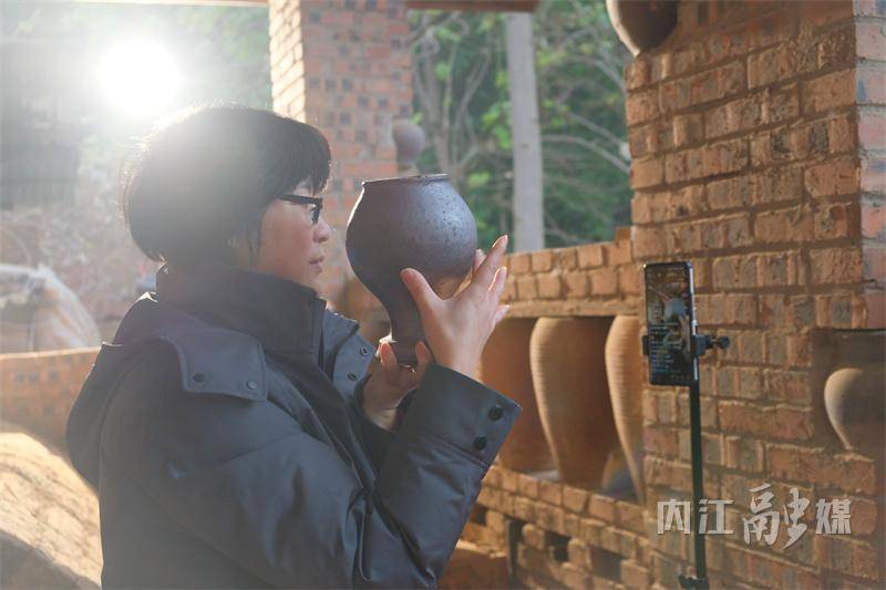虽然工作在银行,但她的“办公室”遍布隆昌各大企业、农场,而梨园村利民土陶加工坊就是她的办公场所之一。在她的镜头下,窑门缓缓打开,滚滚热浪裹挟着烟火气扑面而来。