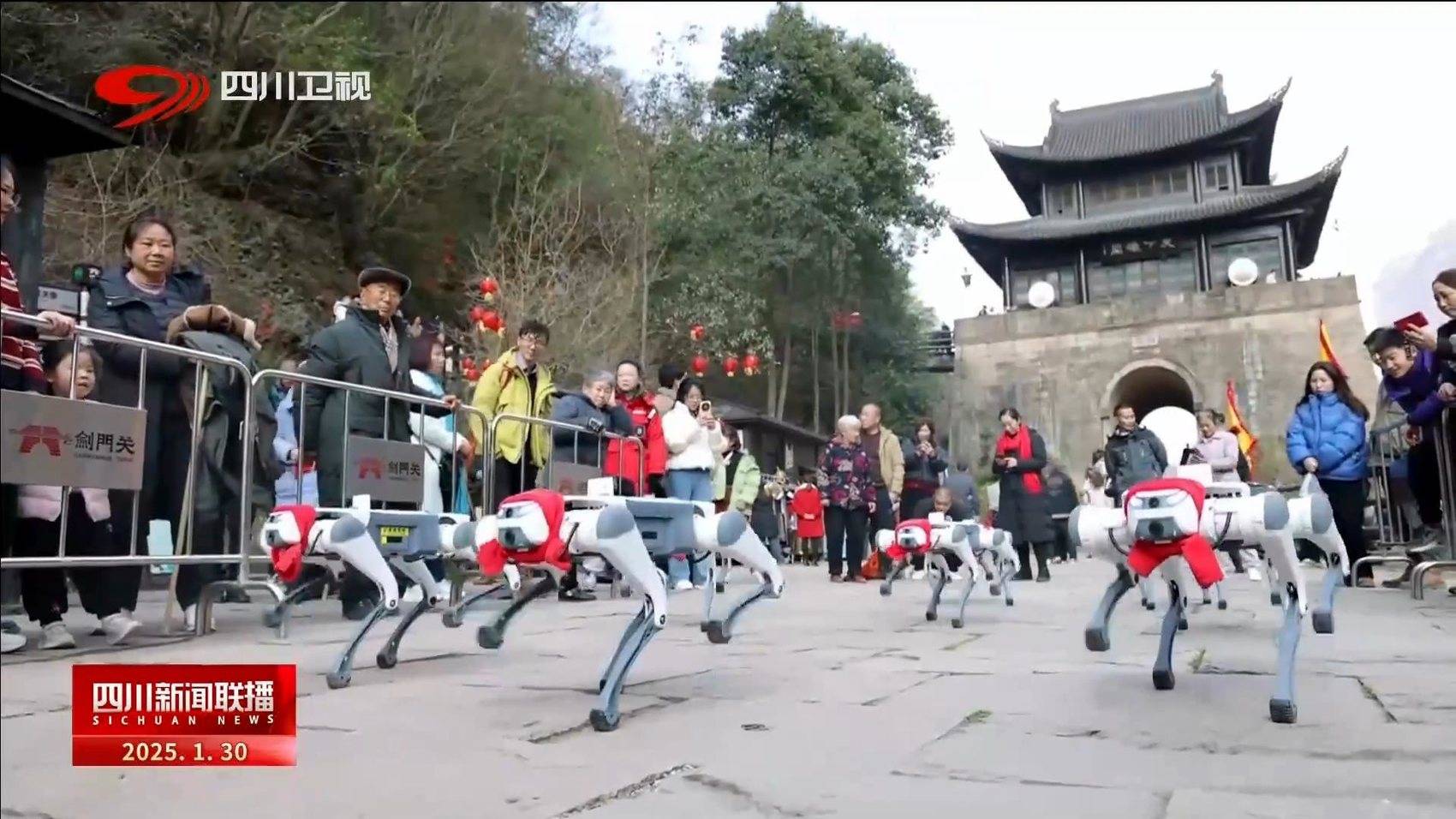 今年春节,四川文旅手握“文化+科技”“传统+创意”强大BUFF,让游客从“看景”转向“入景”,解锁沉浸式文旅新体验。在广安,全新启动的低空飞行体验游吸引了众多游客前来尝鲜,人在景中游,景为人间醉成为节日里的新玩法;在广元剑门关,AI机器狗也来给游客们送祝福,让春晚机器人的“科技风”持续引领。