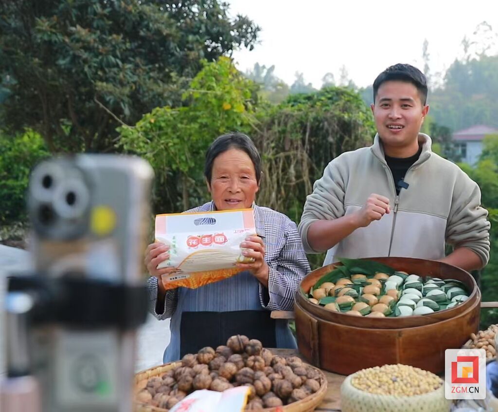 龚向桃(左)在直播中展现乡村生活