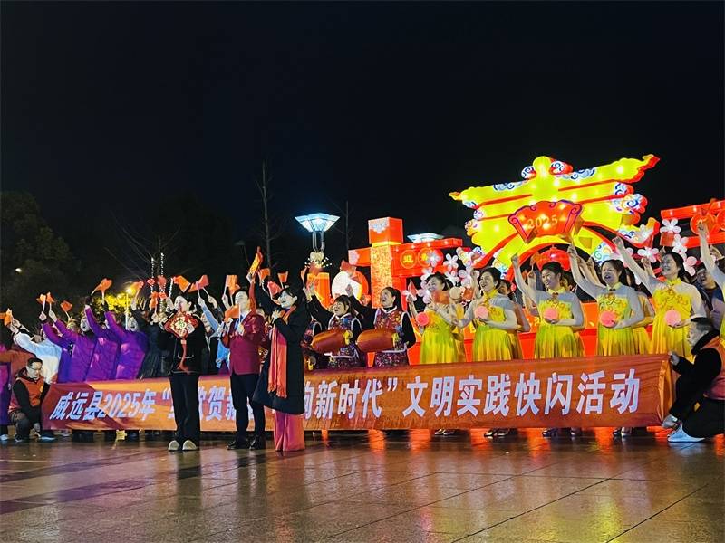 2月6日,正月初九,一场别开生面的“红歌贺新春 唱响新时代”新时代文明实践快闪活动在四川省威远县城市花园广场精彩上演。活动现场,人们唱响了《灯火里的中国》《吉祥中国年》《明天会更好》等歌曲,用歌声表达对祖国的热爱和对新年的美好祝福。