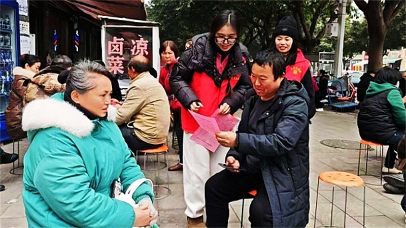 三台县志愿者走街串巷宣传移风易俗。(三台县民政局供图)