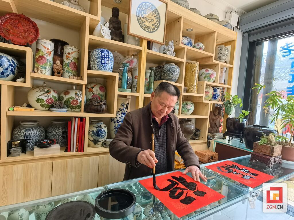 毫无疑问,在这条生活气息浓重的传统街区,老街上的人是幸福的。在喧闹嘈杂的城市中,老街独守一方宁静,它用烟火气包容每一个游人。老街的烟火,如时间无形的大手,拨慢了行人的时间,赐予他们静谧、安宁和绵延不绝的幸福。“春节来临之际,我连续熬了三晚,为大家写了上百张福字。”当天,老街一家古玩店的店主林正平向记者道出了居民们家园文化里的幸福故事:共摆坝坝宴、共同写书画、共享社区治理……在文化圈转了几十年的林正平,最爱的还是幸福家园里的街巷日常、邻里身影。老街在外人眼里是一处充满文化底蕴的旅游打卡地,对他而言则是生活了六十余载的家园,他和邻居们都愿意为了老街发展作出自己的贡献,老街子社区博物馆便是他们共同的杰作。
