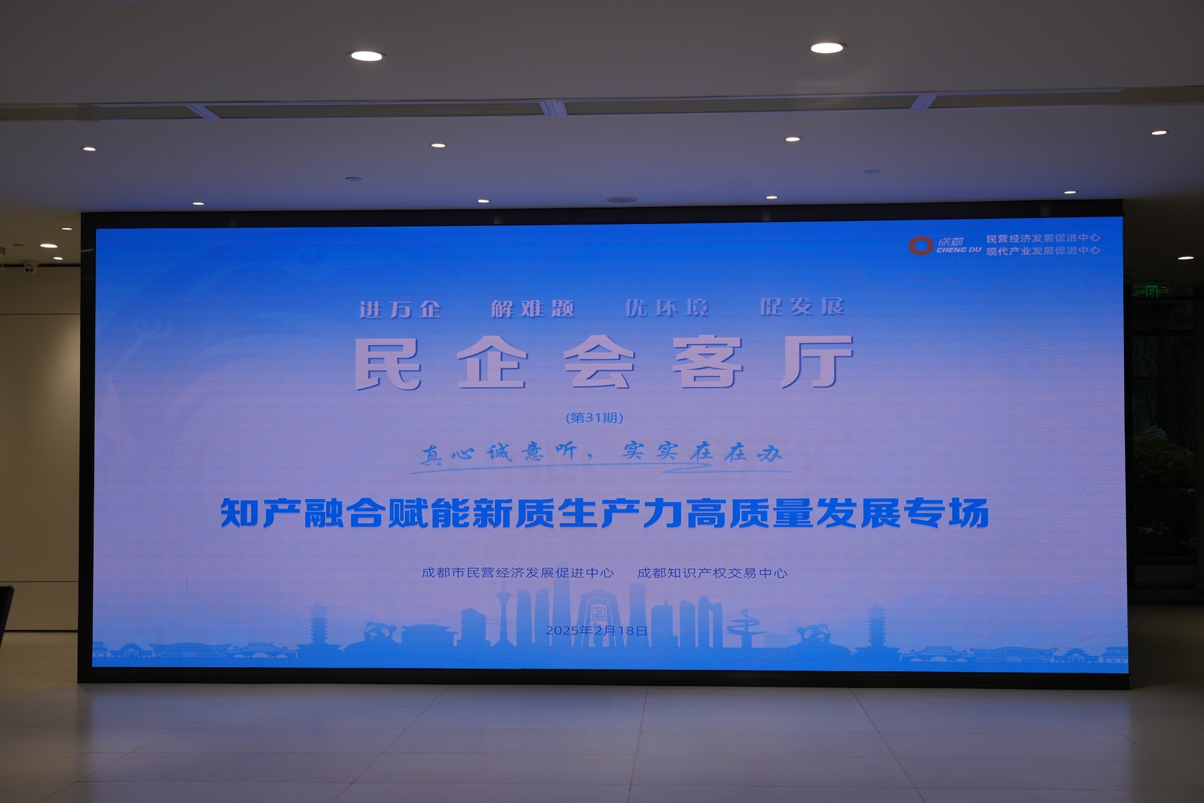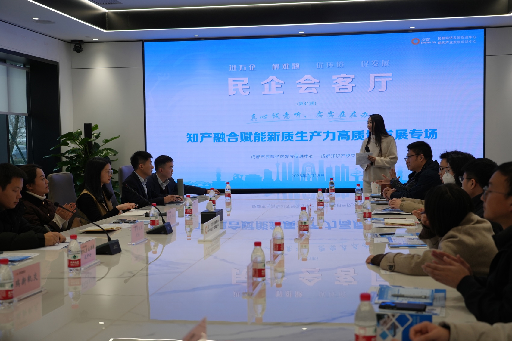当日下午,由成都市民营经济发展促进中心主办的“民企会客厅”——“知产融合赋能新质生产力高质量发展”专场活动上,“如何让更多知识产权成果走出‘书房’、走进‘厂房’”成为众多企业关注的焦点。