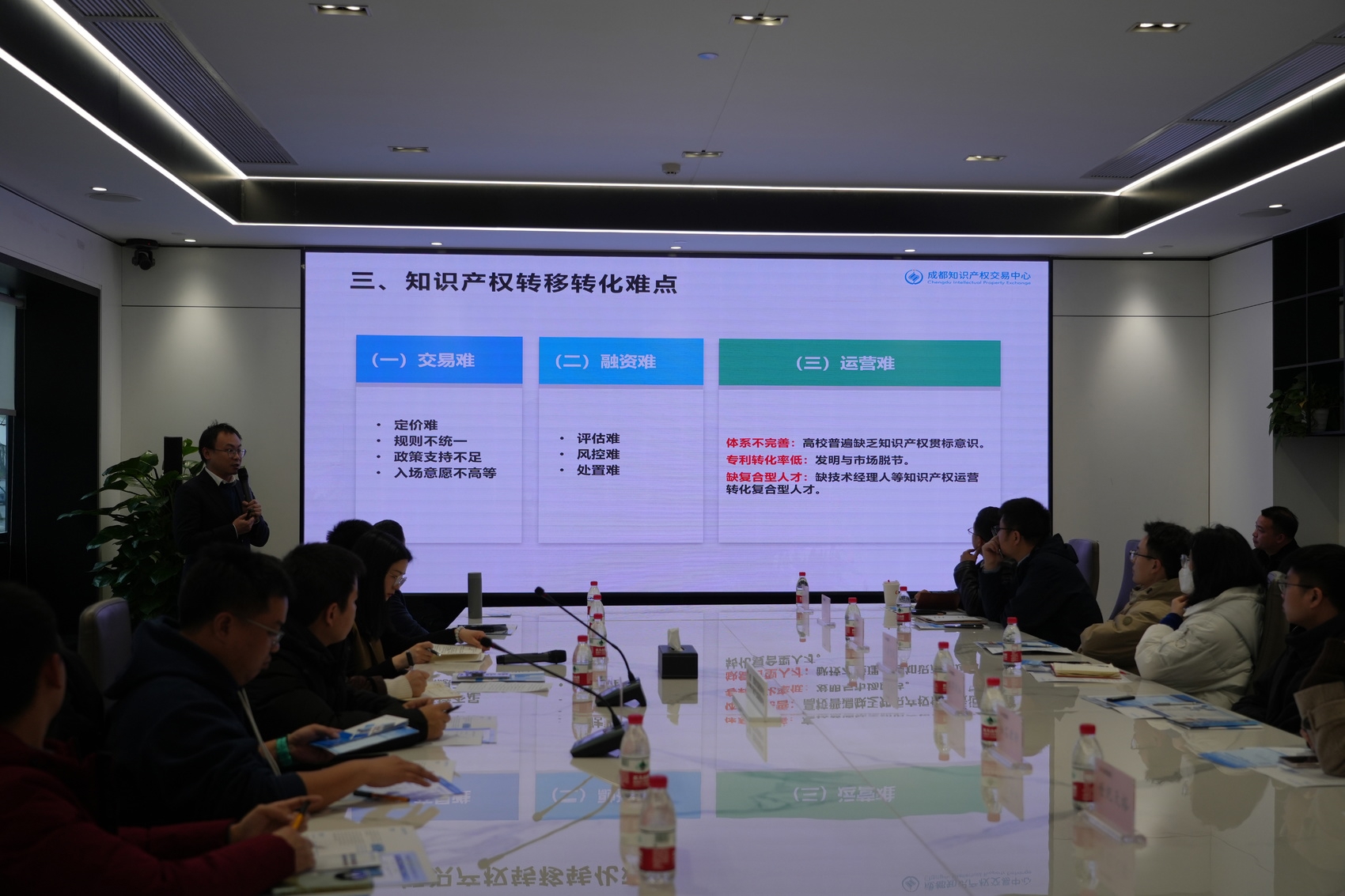 活动中,成都知识产权交易中心的专家围绕“知识产权成果交易助力创新成果转移转化”和“知识产权金融服务支持专利产业化”两大主题展开专题分享。深入解读了知识产权转移转化、技术交易(合同)登记及相关支持政策,重点介绍了知识产权质押融资机制及补贴政策,为科技型企业科技成果转化运用提供了切实可行的操作指南。
