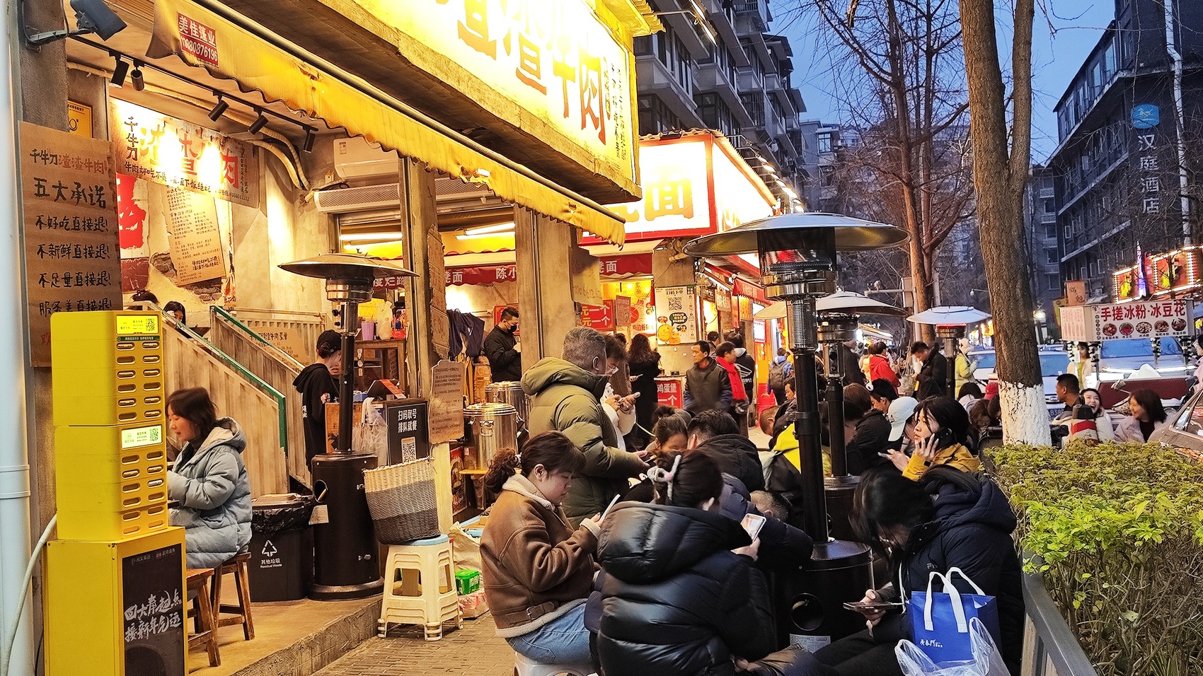 “终于轮到我们了。”2月19日,在奎星楼街街口的一家火锅店外,来自东北的游客珊珊和家人在等待了半小时后,终于吃上了心心念念的火锅,“请了年假带着家人错峰游,出发前就做了游玩攻略,火锅要吃、串串要吃,还列了几个要打卡的店铺。”