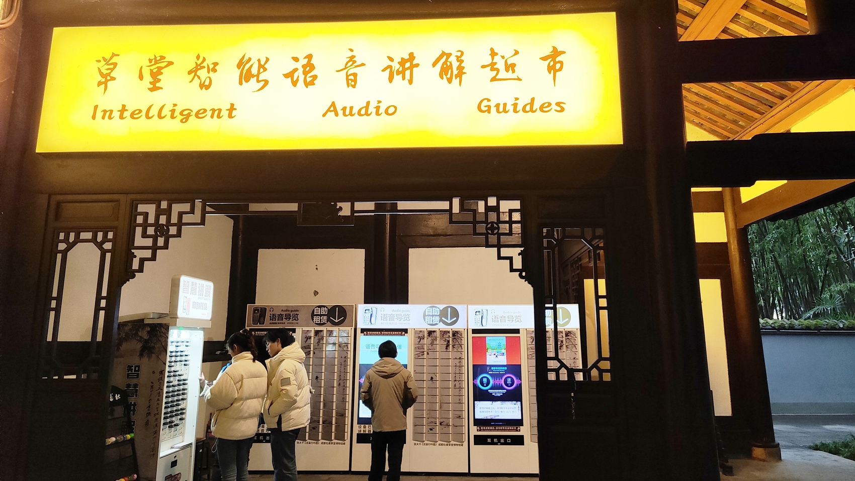 记者从杜甫草堂博物馆获悉,从北门到南门,再从南门到北门,该馆40名讲解员轮流上岗,每天平均接待3至4场讲解,每个人的步数都超过了2万步。为了满足更多游客的需求,杜甫草堂博物馆主要入口处设置了智能语音讲解超市,提供自助语音导览器、手机导览和手机可视化导览三种智能导览服务,提供中英文版本的免费讲解内容。在旅游旺季及大型节假日期间,博物馆还推出了定时讲解服务,以最大限度地满足游客的需求。