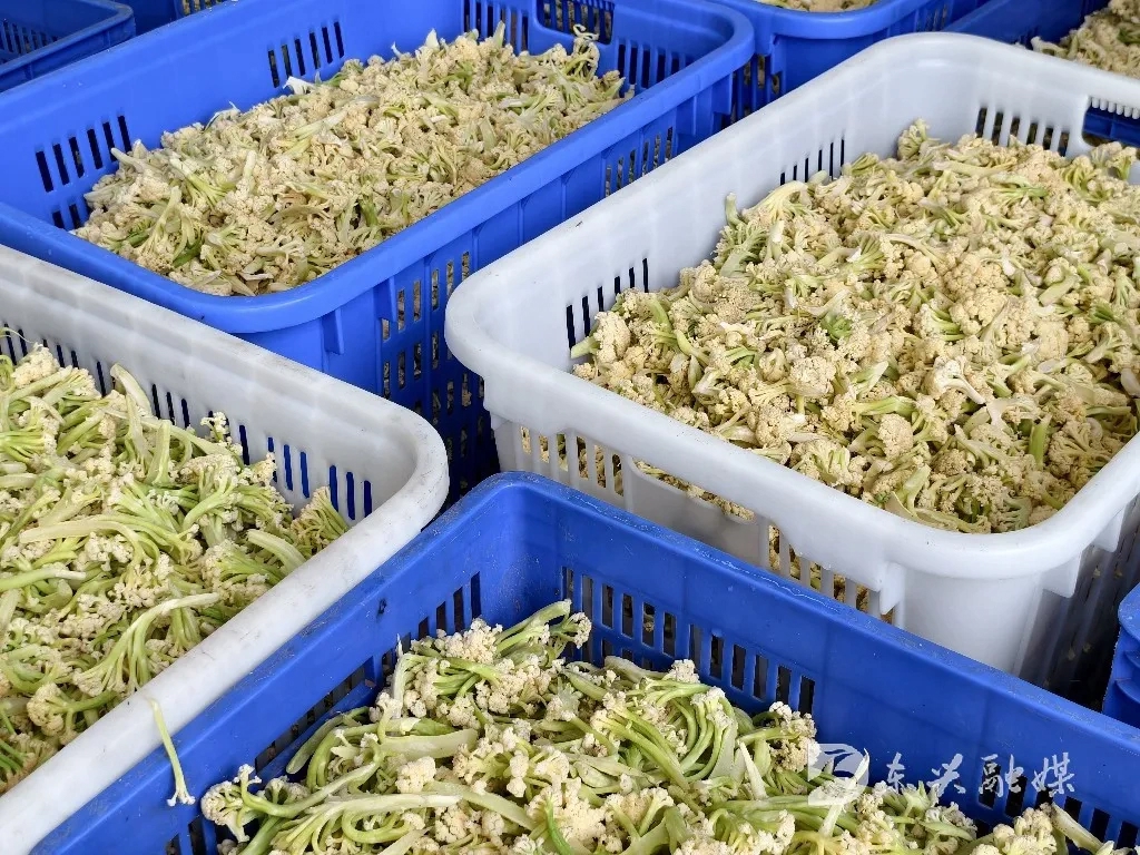 经过探讨,他们决定利用现有资源和设备,首次尝试对花菜进行深加工,通过烘干、腌制,以延长销售时间的方式解决花菜需短时间销售的难题。