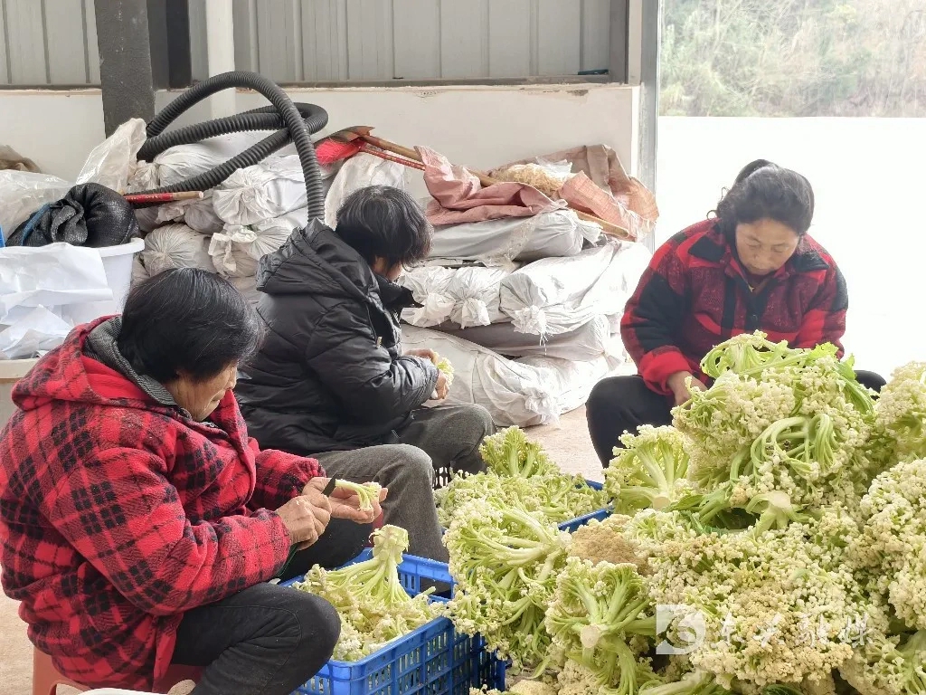 “我们火花村对花菜进行加工,开发了脱水花菜,花菜盐菜等产品,打破传统蔬菜销售渠道,反季节销售花菜,有效提高农产品附加值。”火花村党总支书记邹丹介绍到,火花村采取支部+企业+农户的模式,拓宽销售渠道,增加村民收入,不断壮大村集体经济,为乡村振兴注入源源不断的活力。