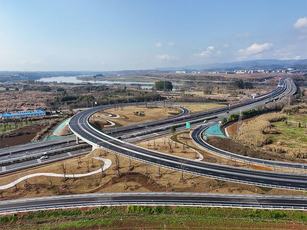 这是2月25日在四川省成都市金堂县拍摄的成南高速扩容工程连接淮州新城收费站的淮口互通(无人机照片)。