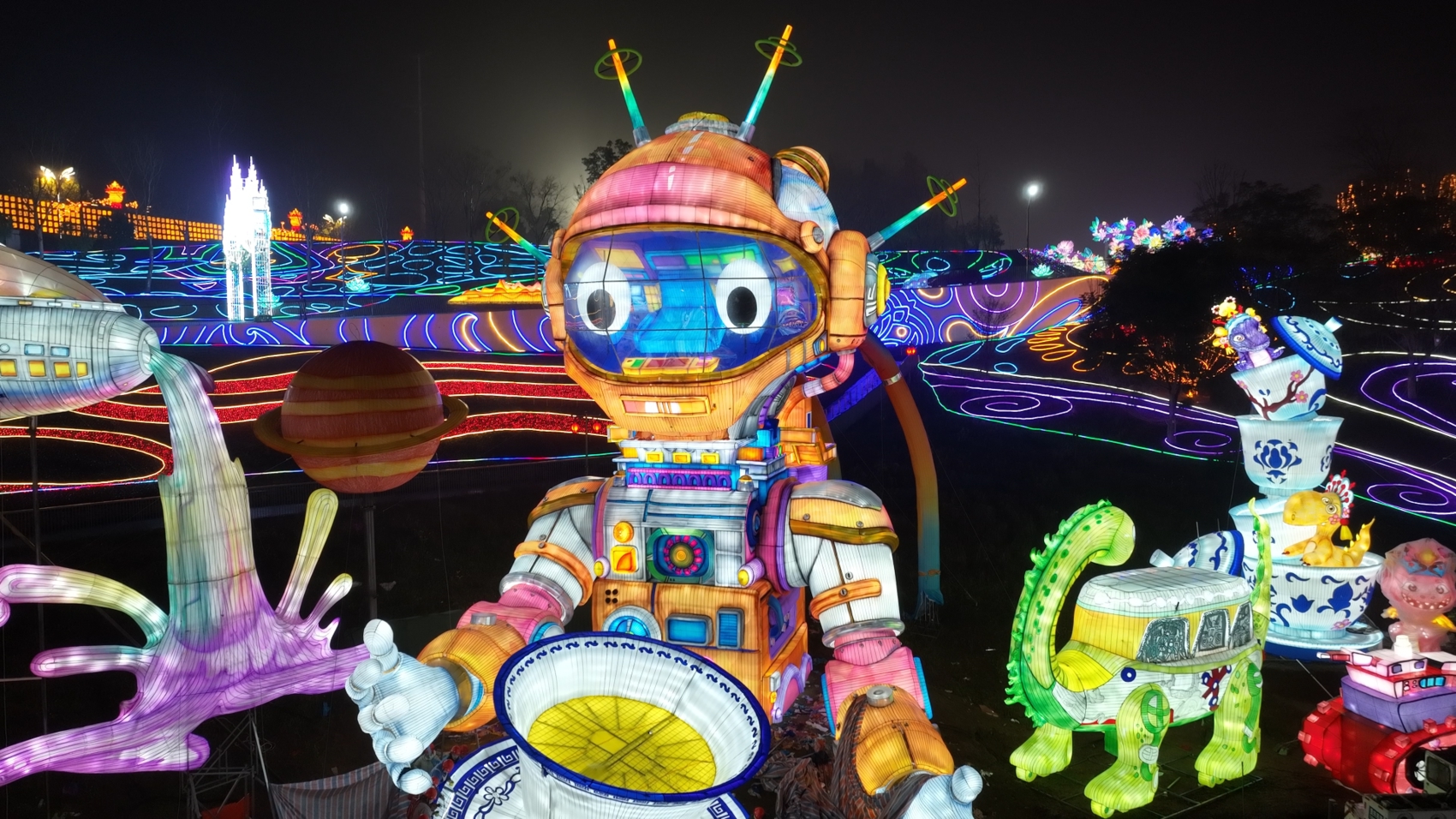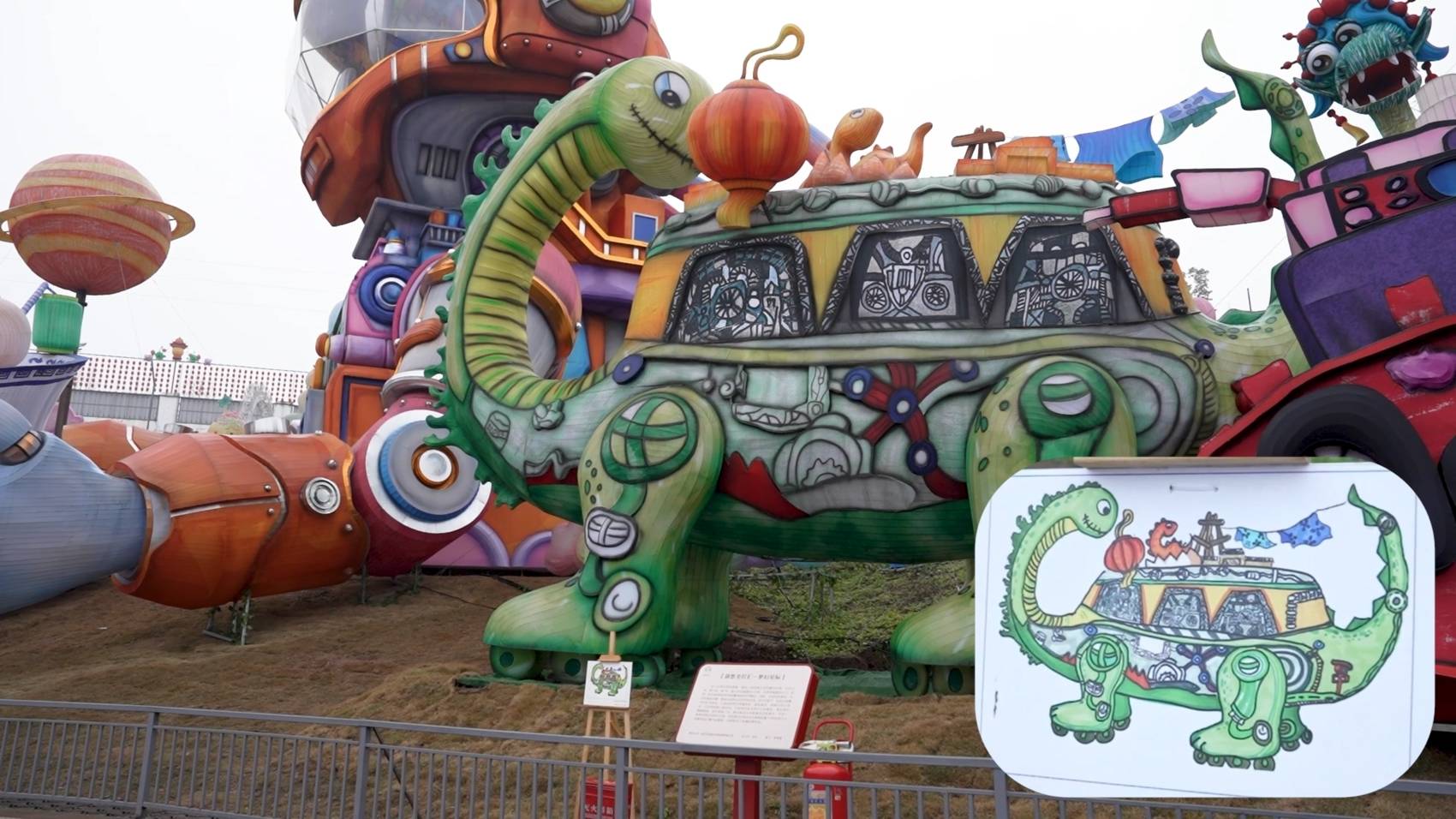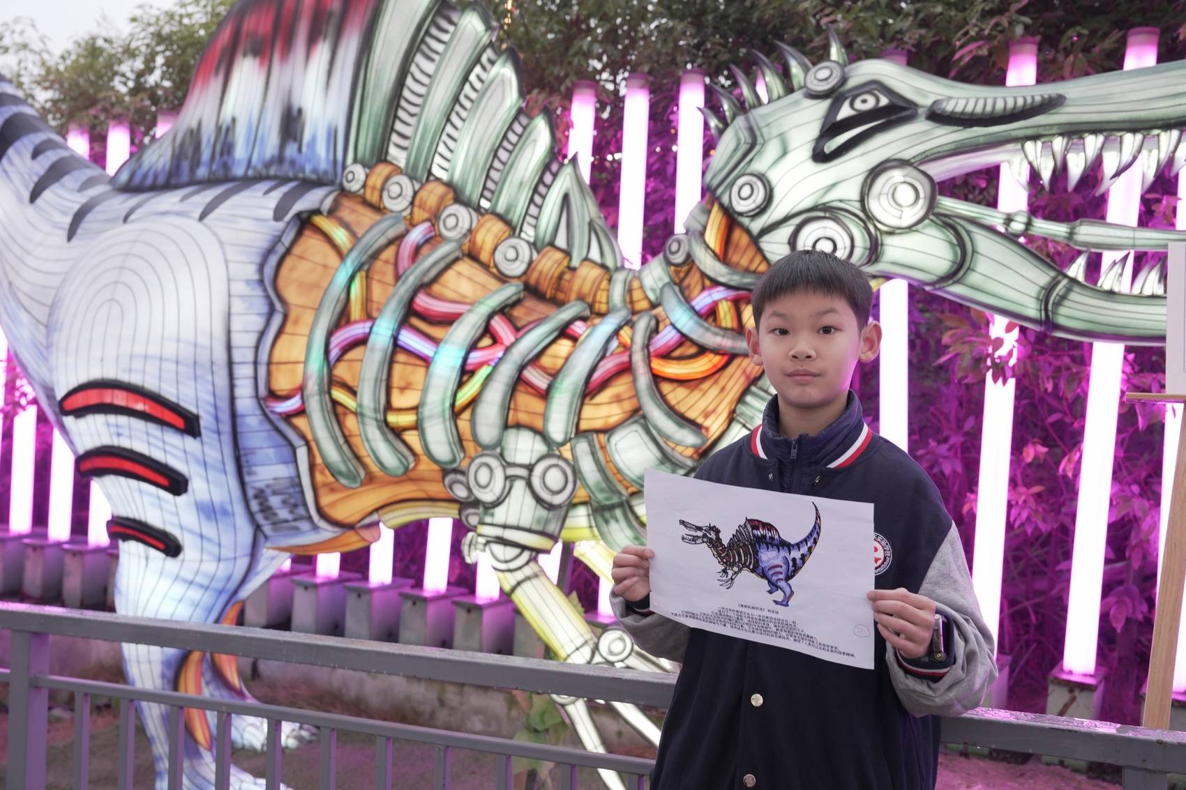 “我听大家夸这个画得好,就偷偷很开心!”林恣琰骄傲地指着不远处绵延成片的五彩花灯,“那个‘恐龙装甲车’、盖碗茶花灯,就是按照我同学和我妹妹的画做的!”