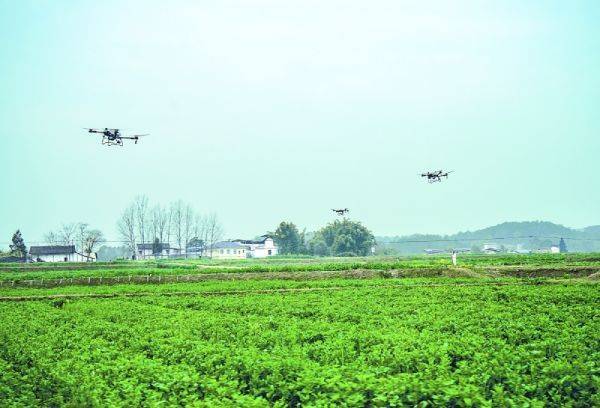 龙云寺村集体经济组织粮食种植基地,无人机参与管护