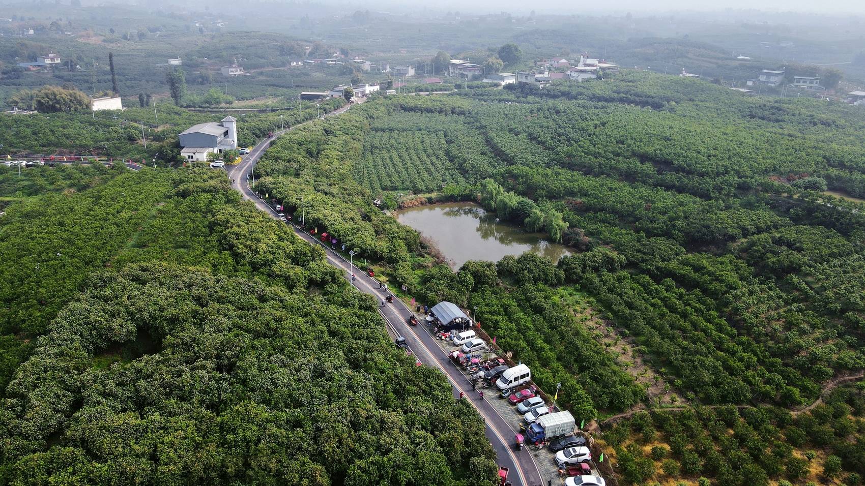 航拍团结村的万亩柑橘林。