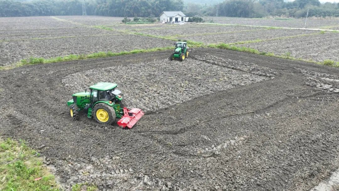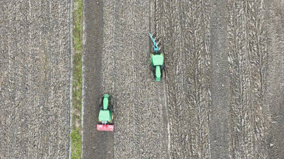 第二天一早,徐俊红预约的旋耕机、液压翻转犁两台机械来到田间,开展翻耕作业。半天时间,两台机械就完成了80亩作业。