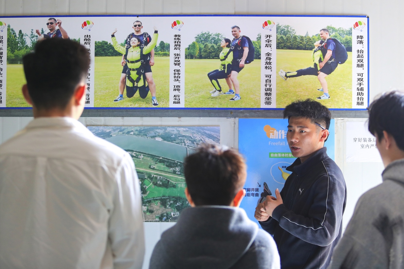 走进四川豪芸通用航空有限公司飞行基地,里面一片繁忙景象。一望无垠的绿地草坪上飞机频繁起降,空中不时传来轰鸣声,高空跳伞的游客也接踵而至。在准备区,不少游客正整装待发,教练耐心地讲解着跳伞动作,分享着飞行技巧,游客们用心倾听,为即将到来的“云端体验”充满了期待。