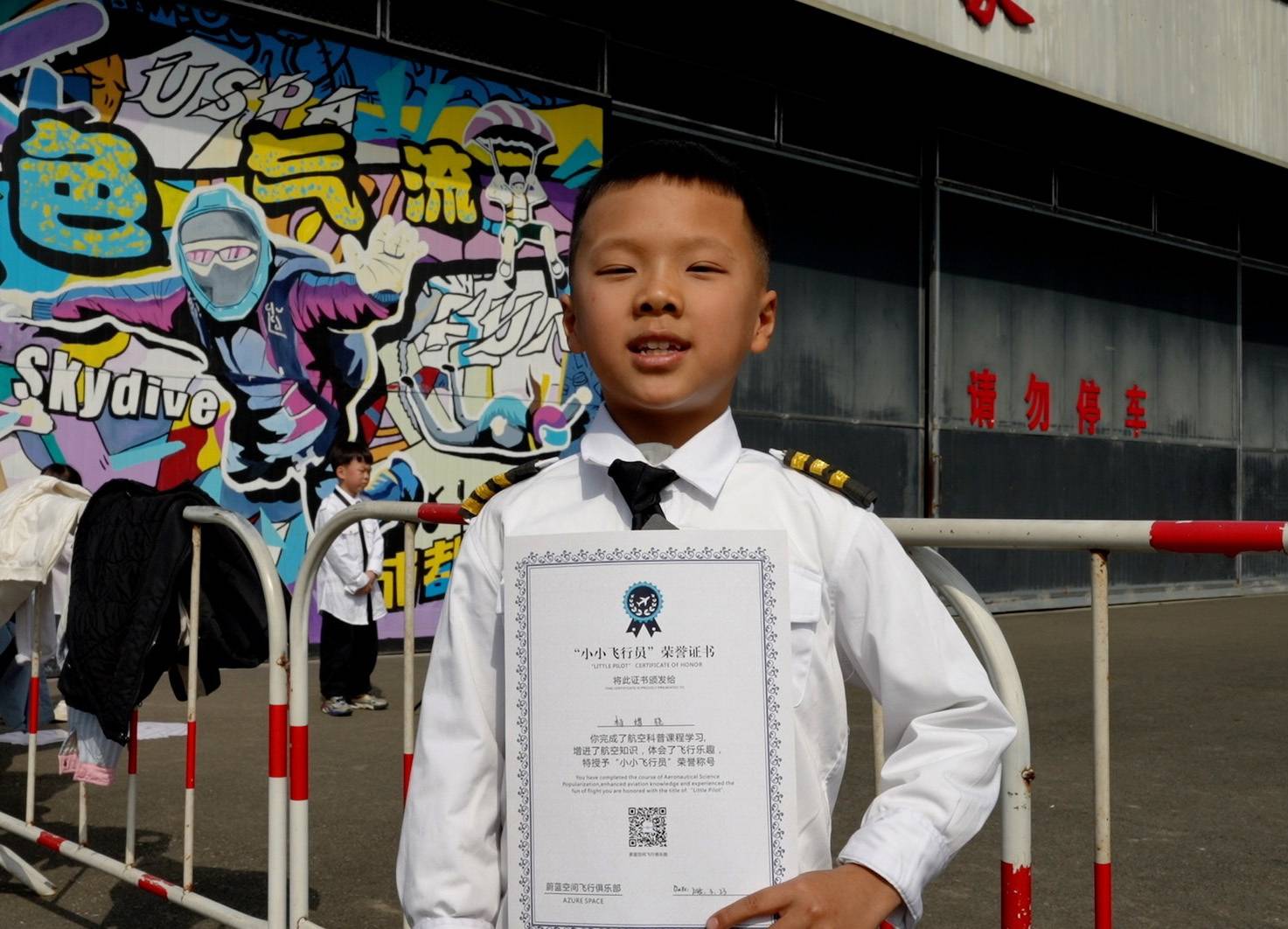戴上飞行员墨镜,换上一身帅气的飞行制服,游客在飞行教员的指导下,便可乘坐轻型运动飞机遨游花海。就读于崇州市蜀南小学的8岁杨熠骁,就体验了一把小小飞行员的乐趣。别看年龄小,但胆量很足,杨熠骁说:“我是第一次飞行,上飞机的时候还是有点害怕,但飞机平稳后,在教练员的指导下很快掌握了飞行技巧。我甚至可以短暂操作飞行,能够让飞机进行一些俯冲和侧飞的动作。”