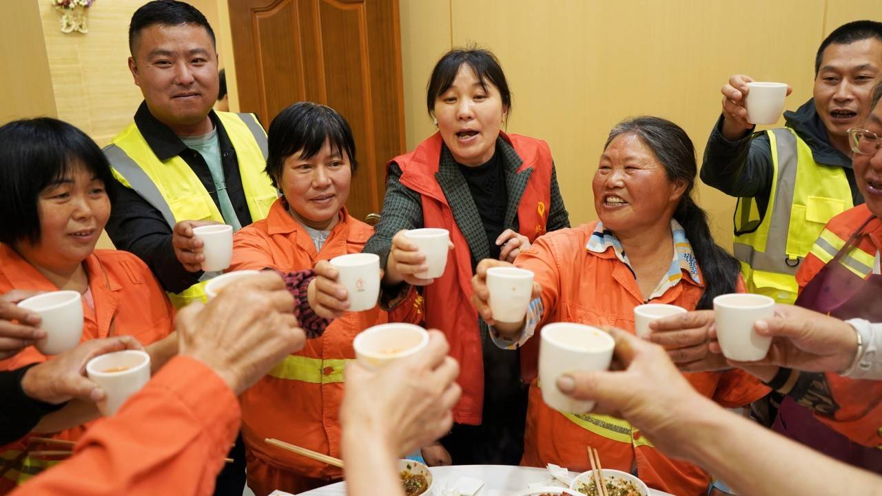 环卫工人们举杯共饮。蜗牛摄影 张力 摄