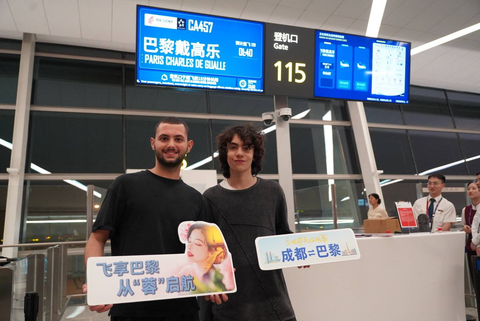 首航航班旅客周先生带着三岁半的儿子,从山西太原赶到成都中转飞巴黎。“来回机票都订的这条航线,趁机会一定在成都好好旅游一番。”周先生说,此次飞往巴黎为探亲游。张先生也是首航航班旅客,他称其定居在巴黎,但是现在大部分时间在国内工作,以前主要是从北京飞回巴黎,而现在成都也开通巴黎航线,出行选择更多了,变得非常便利。