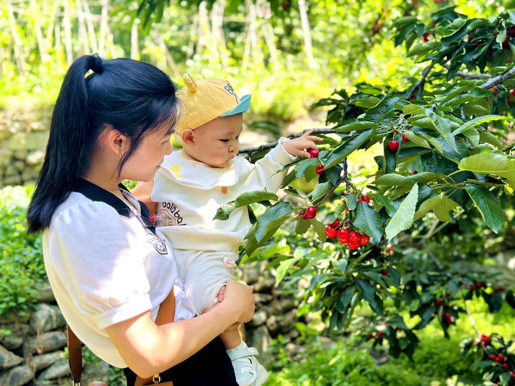游客采摘汶川甜樱桃 伍排勇摄