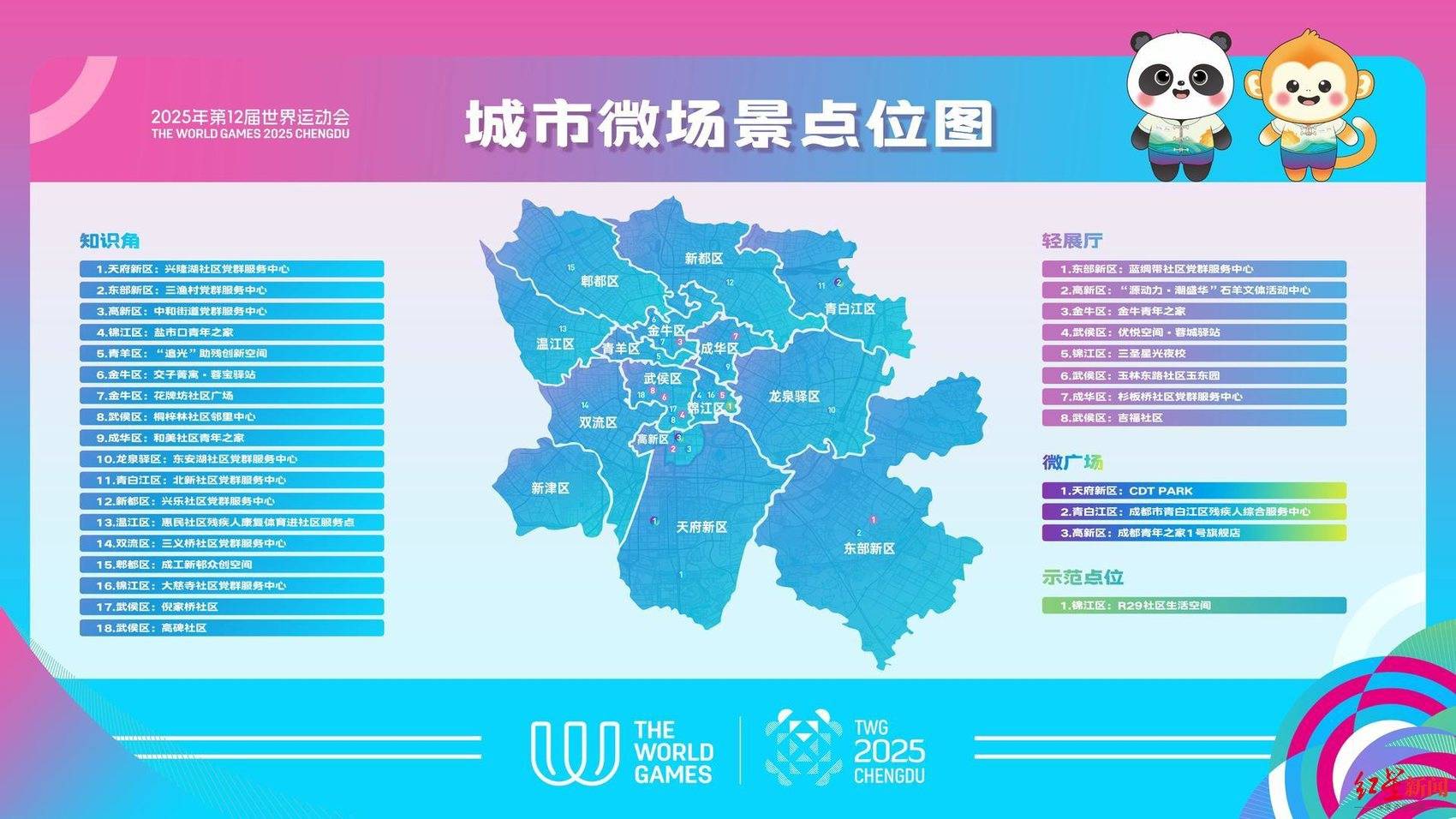 “城市微场景”分布于全市范围内重点社区、青年之家、党群服务中心等,通过世运项目互动装置和世运文化符号,以“知识角”“轻展厅”“微广场”三种形式构建触手可及的城市“赛事感知网络”。