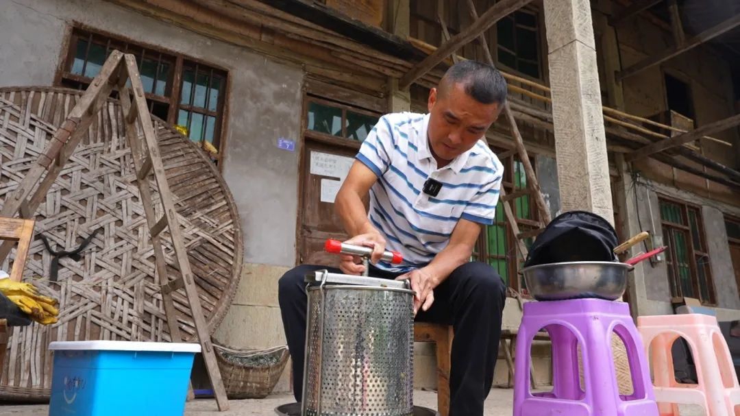 正在割蜜的沈树林说