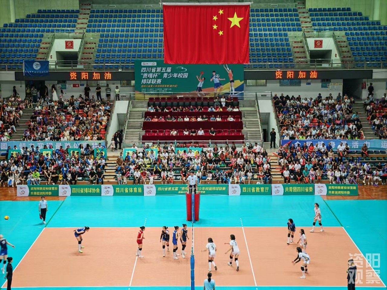四川省第五届“贡嘎杯”青少年校园排球联赛(高中组)决赛现场。