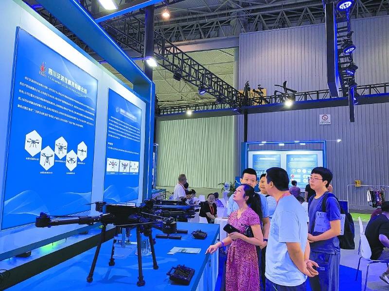 四川沃洛佳科技有限公司研发的水表面流速测量无人机亮相第八届成都智博会(资料图)。南充市融媒体中心记者谯灵敏 摄