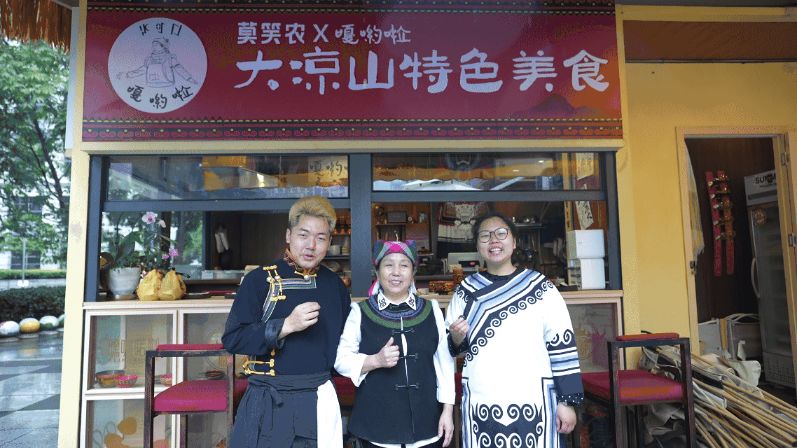2023年10月,宁波首届城市火把节在宁波市鄞州区南部商务区山丘市集民俗风情街区火热开启。活动齐聚了凉山40余家独具民俗风情的品牌商户,“嘎哟啦”餐厅也在受邀之列。短短一个上午时间,俄者鲁席带来的三盆金豌豆凉粉销售一空,受到宁波本地游客的青睐。