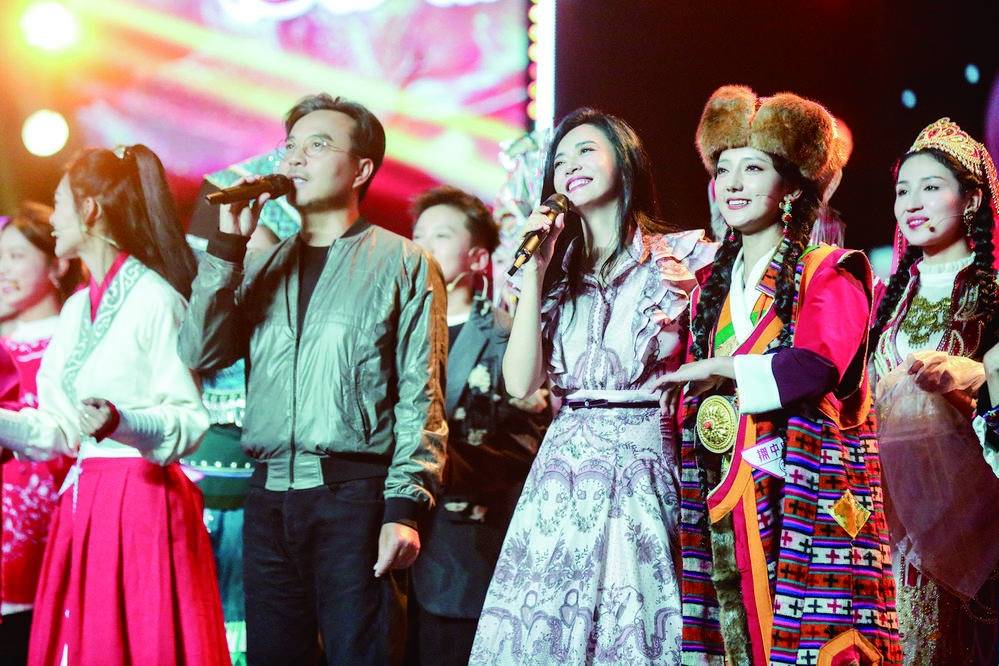 拥中卓玛(右二)参加湖南卫视《花儿绽放》节目。