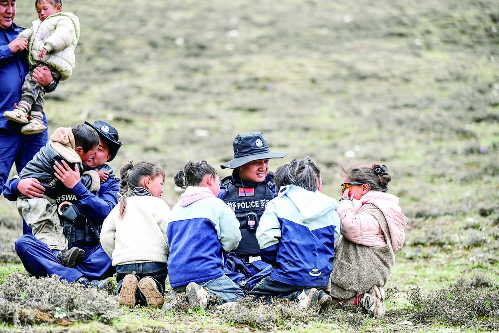 察觉到采集群众的困境,执勤民辅警们悄悄调整了巡逻路线。民警赵赵的执勤本第三页写着:“青打村采集群众帐篷区,7名儿童,需重点看护。”巡逻车停在草坝边,赵赵从背包里掏出准备好的零食,分给攥着石子的小手,另一名执勤队员则用藏语讲着山鹰与狐狸的故事。