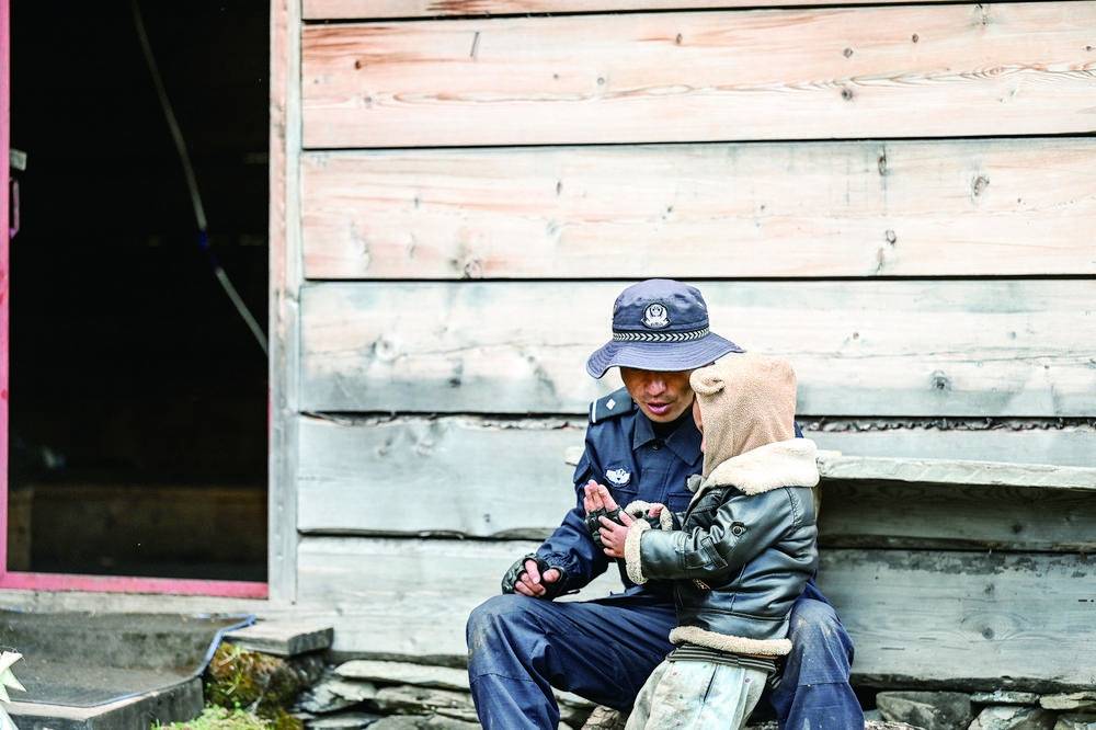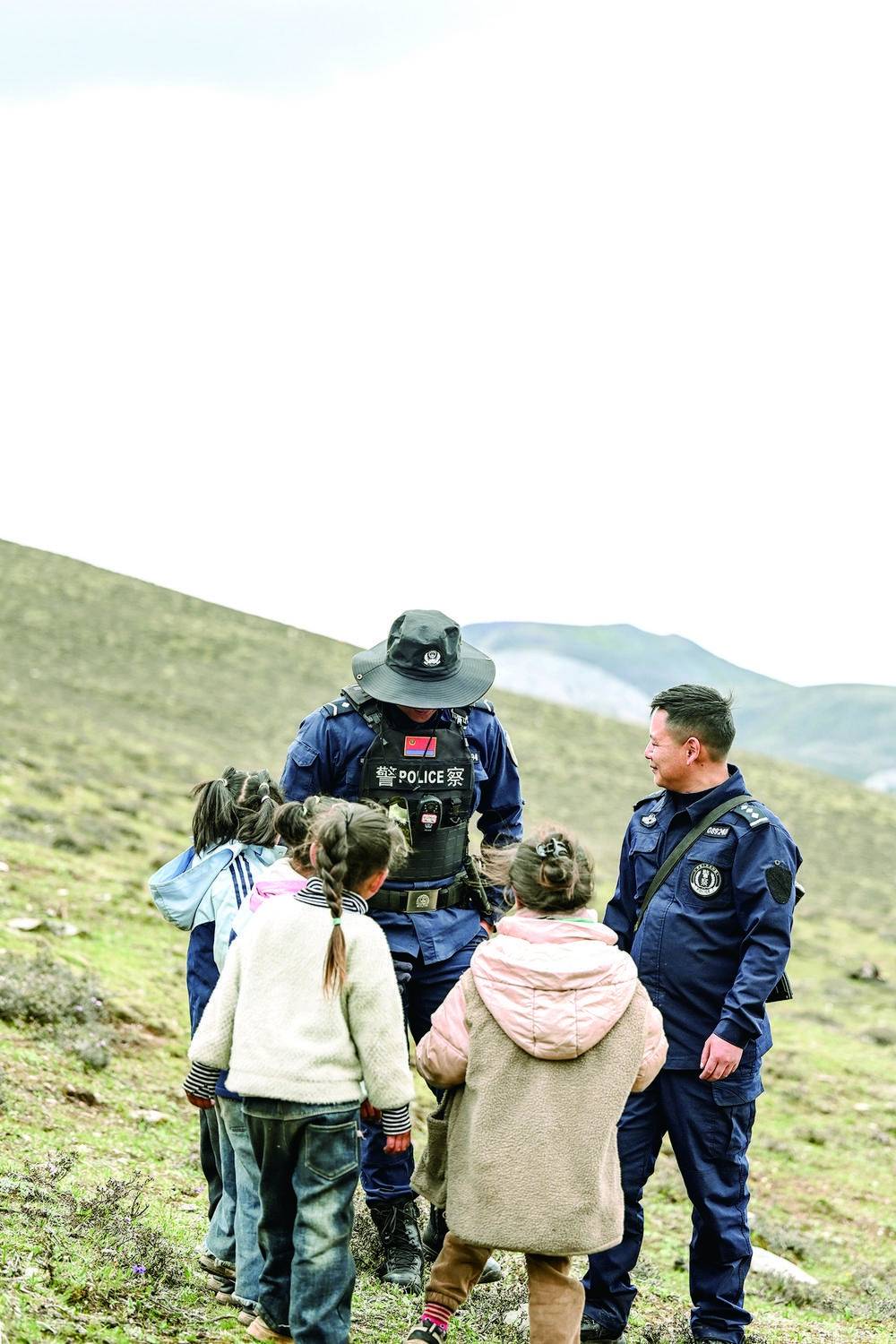 “卓玛!别去河沟边……”话音未落,扎红头绳的孙女已踩着碎石滑进干枯的河道,藏靴踩落的砾石簌簌滚落;双胞胎兄弟在开满狼毒花的草坝上追逐,衣襟被带刺的灌木勾出毛边。拉姆大娘拄着木棍追出帐篷,晨雾裹着的草腥味让她忍不住咳嗽,额间的皱纹都快拧成氆氇结了。“去年邻县的帐篷被棕熊扒开,前年草甸遭遇雷击……”一想到这些,这位年过半百的藏族老人攥紧拳头,浑浊的眼睛里满是焦虑。拉姆大娘拉着执勤民警赵赵的袖子说:“警察同志,娃儿们在草坝上乱跑,我这把老骨头追不上啊。”