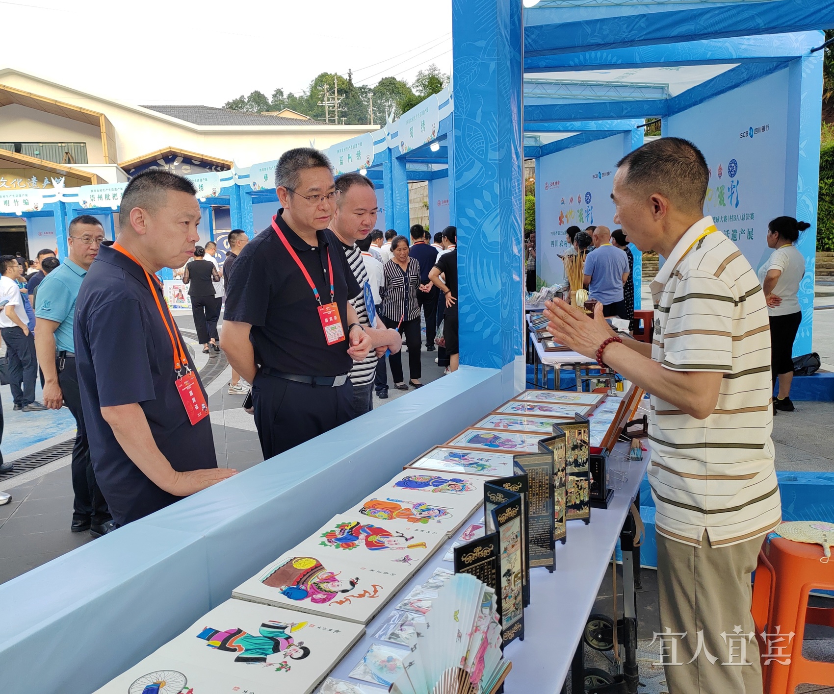 嘉宾驻足了解非遗(宜宾融媒 黄铄然 摄)