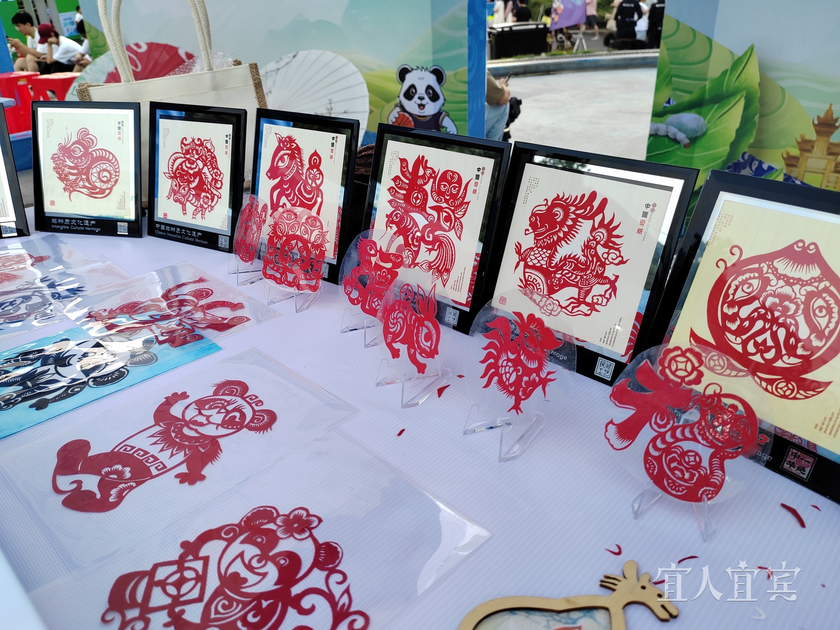 来自绵阳的三台剪纸省级非遗代表性传承人兰小奇表示,作为非遗传承人,自己有责任将这项文化带到老百姓身边,让大家真切感受中国传统艺术的魅力,进而增强民族自豪感与自信心,“我从事剪纸创作已有五十多年,徒弟遍布省内外。” 兰小奇坦言,以往一幅精品剪纸要卖到几千元,普通百姓难以接受,为此,她琢磨出接地气的法子——把剪纸做成钥匙扣,十块八块就能买一件,年轻人喜欢,不知不觉就把文化“带”回了家。而她的作品皆为原创,既充满巧思,又饱含吉祥寓意 —— 既有融合熊猫、三星堆元素的“川味”剪纸,也有承载“鱼跃龙门”“吉祥富贵”“福寿双全” 等美好祝愿的经典题材,每一件都透着对传统与生活的热爱。