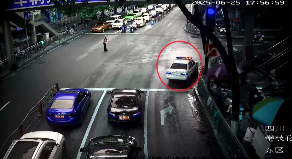 为争取急救时间,攀枝花市交警一大队民警武超驾驶警车为通勤车开道。“把双闪打起,直接往市中心医院走。”在沿线交警的帮助下,搭载着患者的通勤车不到十分钟就顺利抵达攀枝花市中心医院。