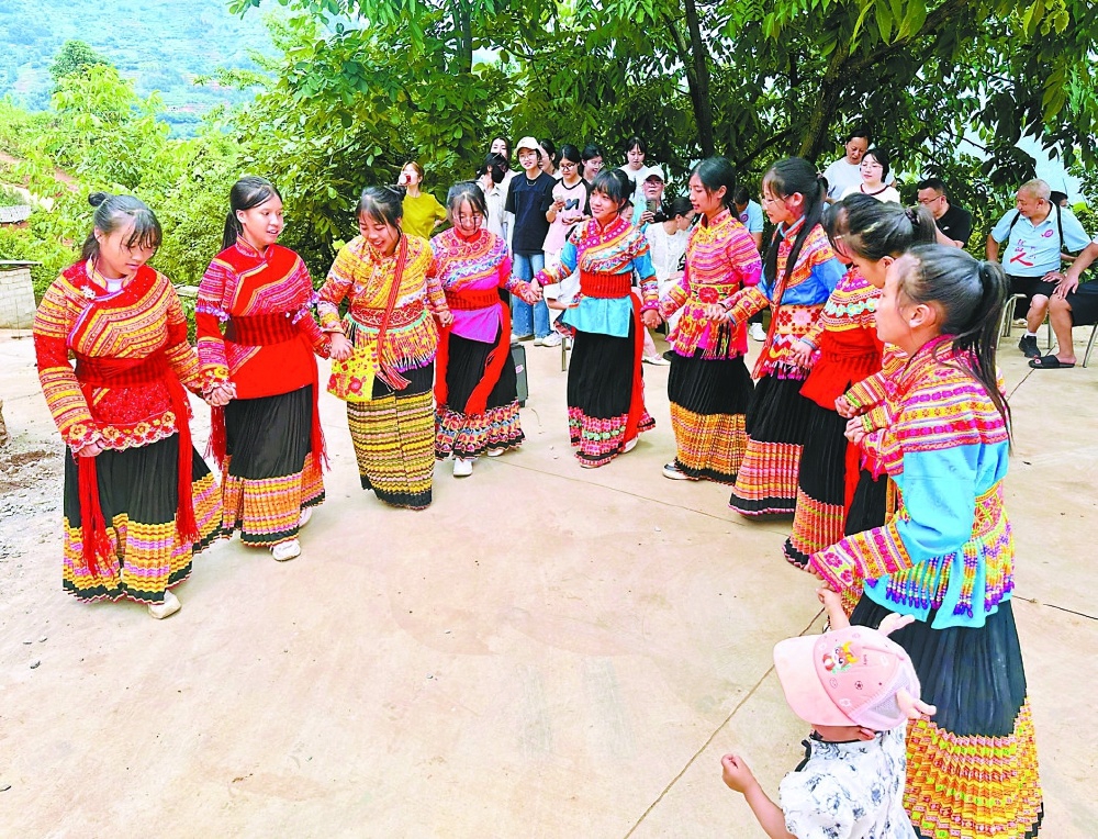 饭后,音乐声响起,乡亲们拉着志愿者,跳起了傈僳族人最爱的打跳舞。