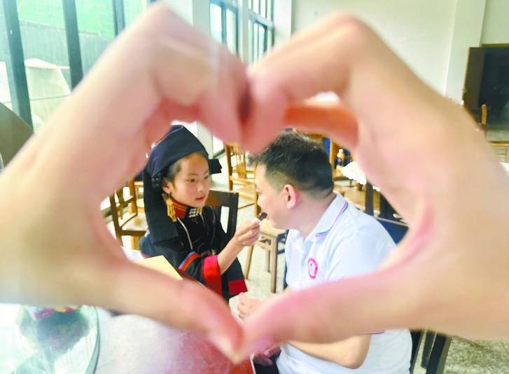 志愿者立马搬运爱心物资,对照花名册念着“小亲戚”的名字,派发孩子们最爱吃的巧克力,送上助学金……期盼已久的亲人见面会,在孩子们的歌声中进行。