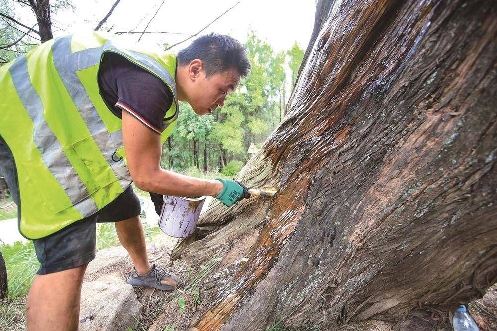 科技支撑下的巡护也更为高效精准。今年以来,全市开展古树名木巡护21000余次。针对生长环境差、长势不良、根部裸露、主干倾斜或濒危衰弱的古树,专家团队现场“问诊”,开出土壤改良、树洞修补、病虫害防治、支撑加固等科学“处方”。