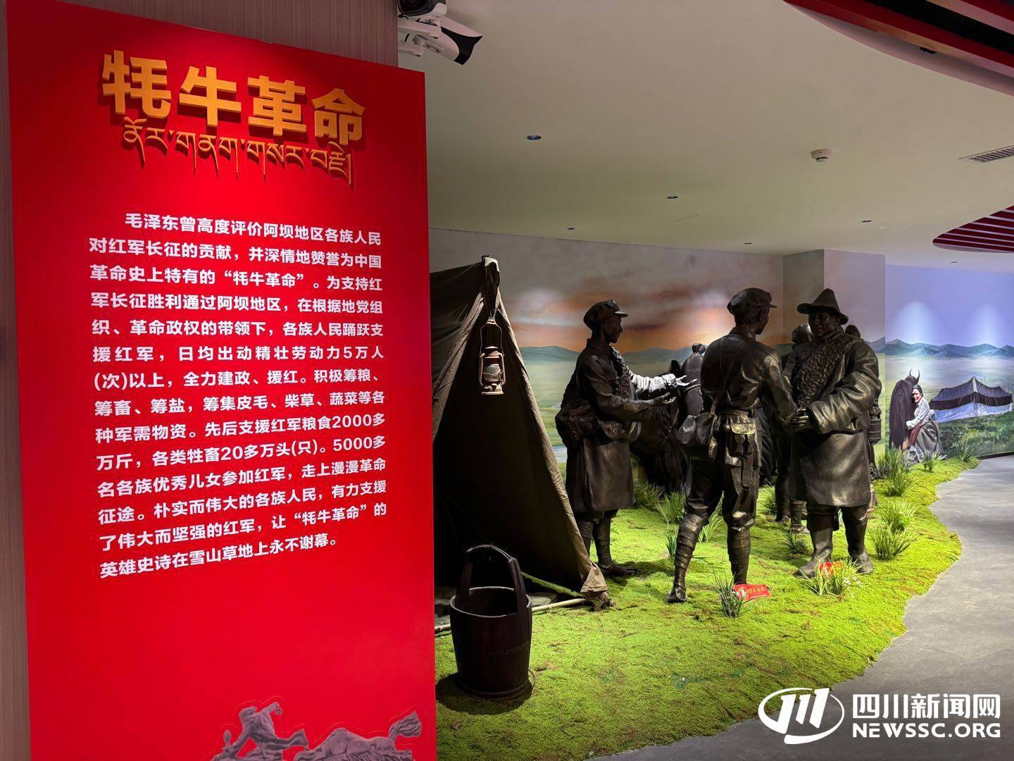 值得一提的是,除了实地遗址,红原县近年来还着力打造红色文化新载体。2024年,建筑面积639平方米的红原县红色文化传承大厅正式开放。大厅通过史料、影像等,系统展现了1935年至1936年红军三过草地的历程,同时呈现了红原各族群众传承长征精神、奋进新时代的实践。作为重要的爱国主义教育基地,这里让红色记忆有了更生动的表达。