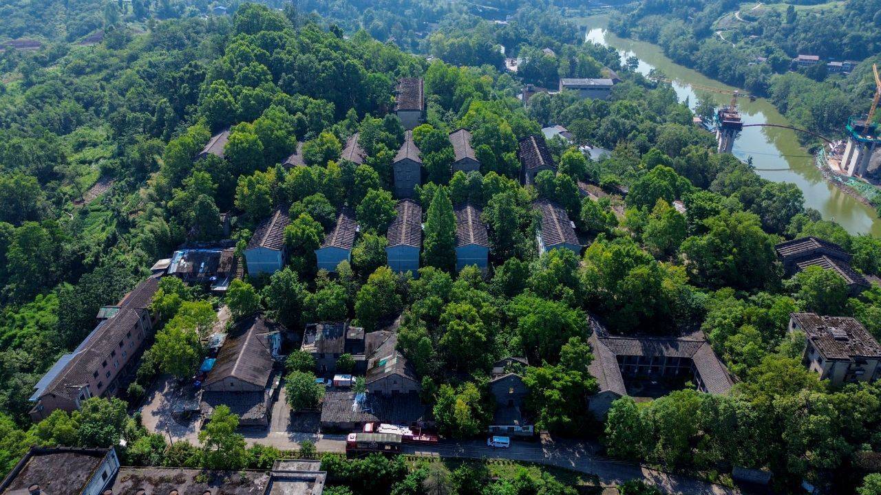 源于达州市大竹县,途径梁平,一路向西的铜钵河,在达州高新区石板街道关渡村突然掉头向北,将这里环绕成了一个半岛。岛上有一片被幽林掩映的“神秘”建筑群,那就是“三线建设”重要工程之一的064基地。