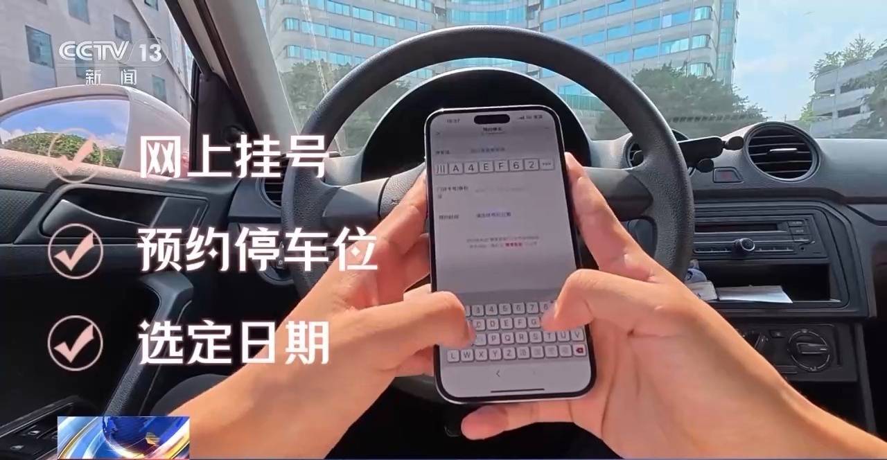 首先,市民可通过官方公众号,挂号后提前预约车位。在医院的门口还设立了这样的即停即走的区域,让接送患者的车辆走得快、停得稳,不用去抢位子了。