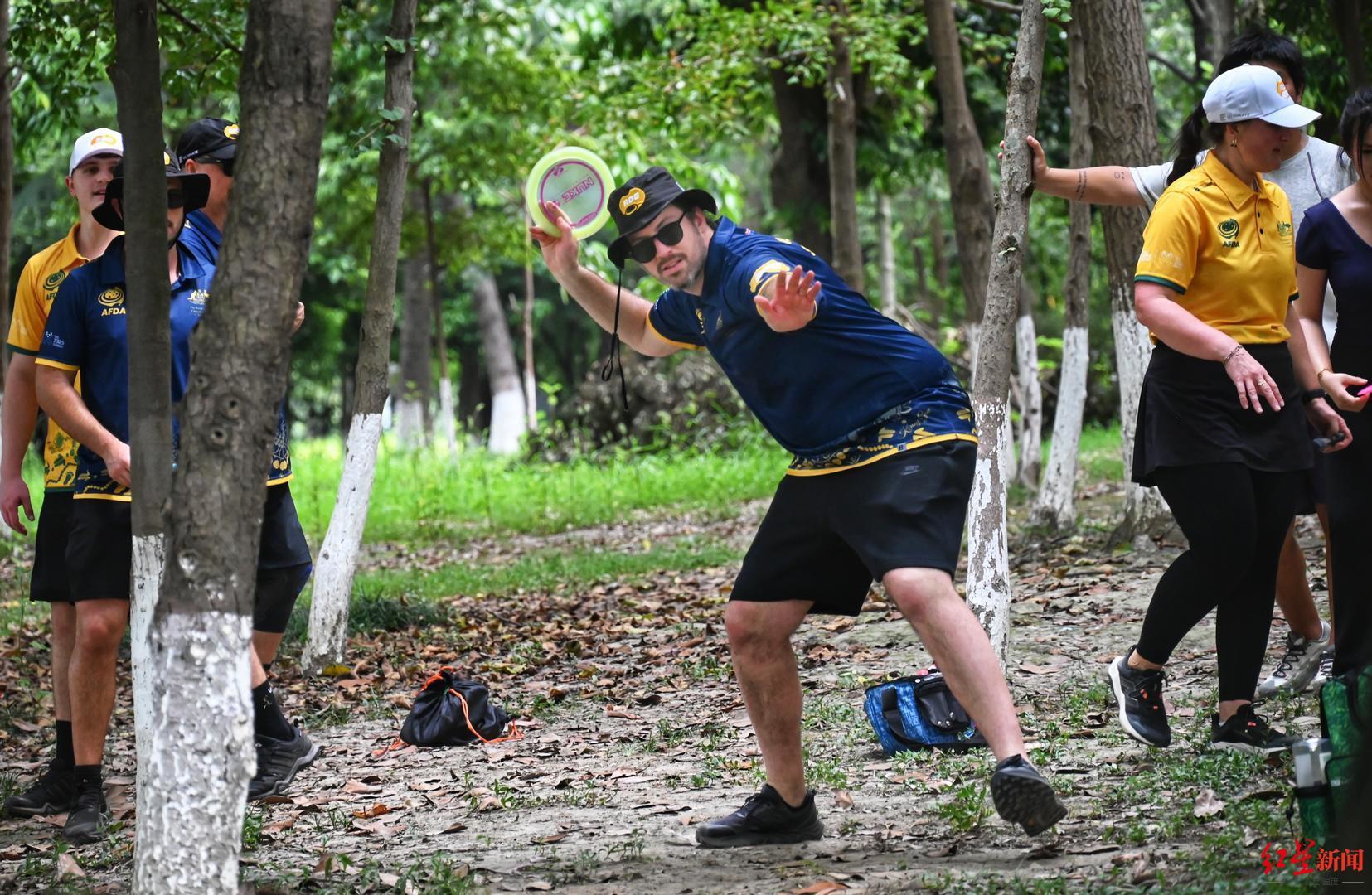 这一幕发生在8月4日的成都,距离成都世运会掷准飞盘(Disc Golf)正式开赛仅剩4日。来自澳大利亚的4位掷准飞盘队队员和他们的教练,在成都和广东飞盘俱乐部成员们的陪伴下,正进行着一场跨越季节与国界的特殊世运会赛前“热身”。