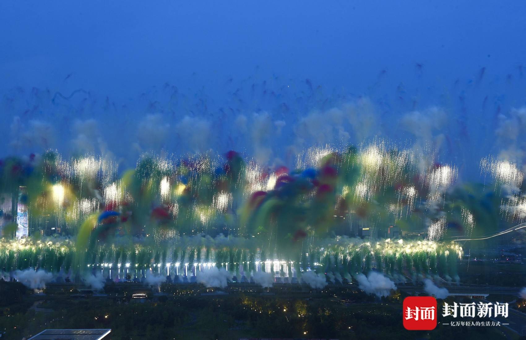 在“友谊之树”绽放时,焰火如浪潮般喷薄而出,火炬、焰火与湖水中的倒影交相辉映、水火交融,共绘一片璀璨华光。“这一绚丽景象正是世运会包容、共享、促进世界和平交流精神的生动写照,如同全球化的时代浪潮,奔涌不息,勇往向前。”蔡灿煌表示。